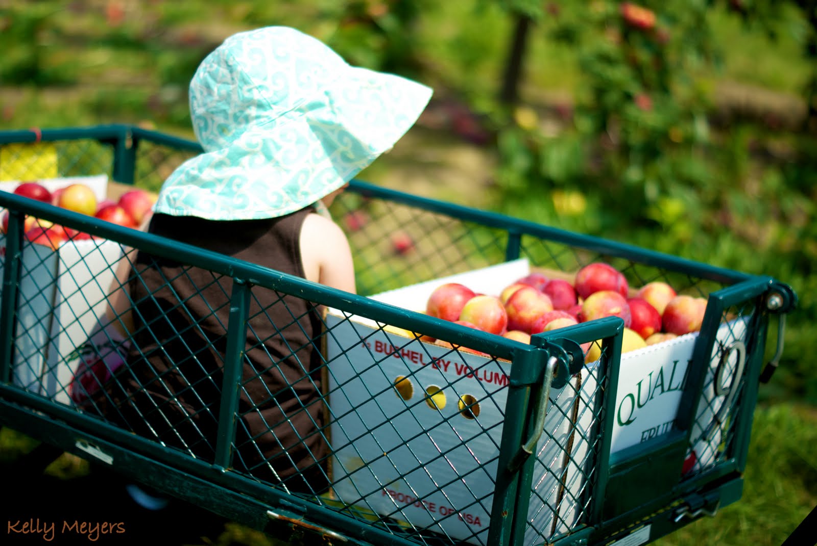 So, please, if anyone has any good peach recipes, send them my way. I have 25 pounds of peaches that I am grim and determined not to let to go to waste. Not that it kept me from talking about pumpkin and apple picking on our drive home.